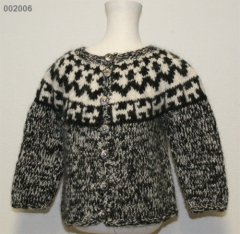 Grásprengd Rennd Barnalopapeysa með hvítu og svörtu mynstri.