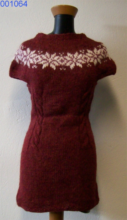 Rauður Skokkur með Kaðlaprjóni og Rósamynstri